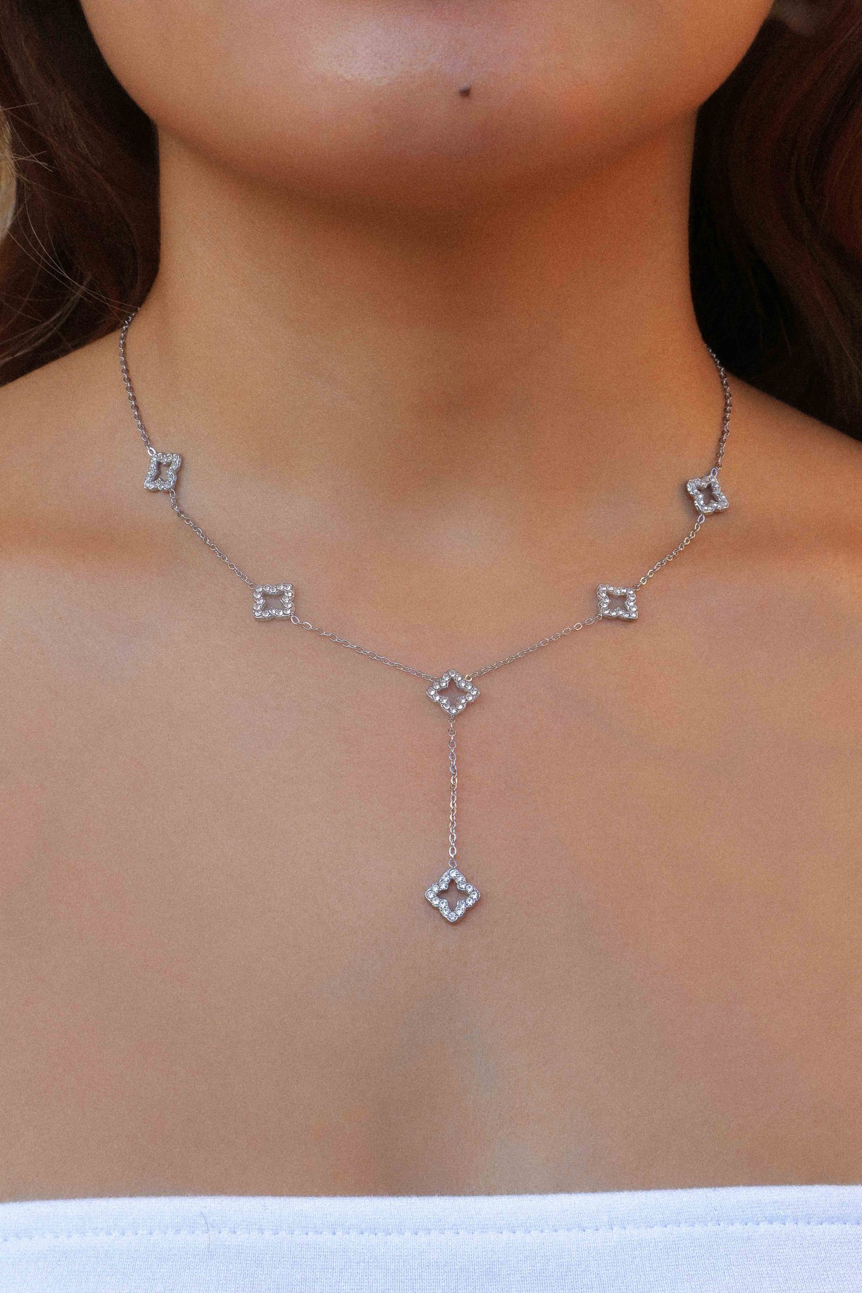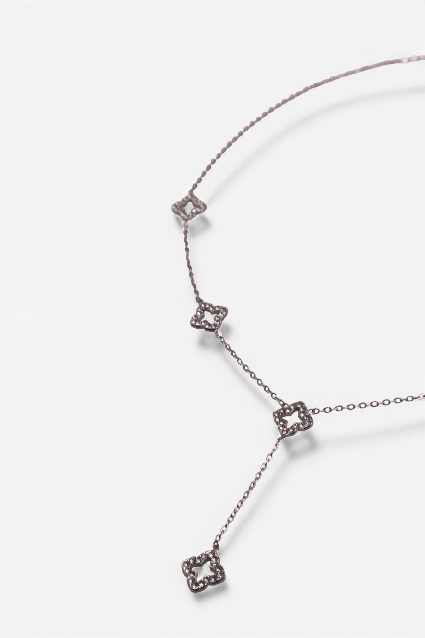 Ce collier argenté se distingue par son design minimaliste et moderne.