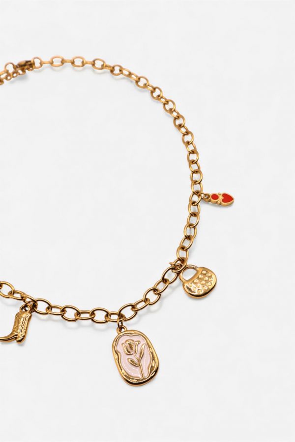 Ce collier doré à charms allie finesse, modernité et une touche féminine irrésistible.