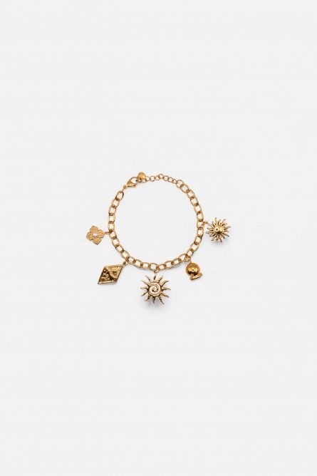Sa forme rigide et épurée est délicatement ornée de petits strass colorés répartis sur toute la surface, créant un jeu subtil de reflets. Les pierres multicolores apportent une touche vibrante et raffinée au bracelet, tout en restant parfaitement portable au quotidien.