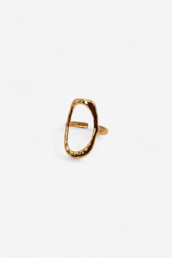 Cette bague dorée se caractérise par son grand ovale ajouré, légèrement irrégulier, qui lui donne un charme organique et moderne. Sa forme sculptée et douce crée un bijou élégant, minimaliste mais sophistiqué, parfait pour ajouter une touche tendance à la main.